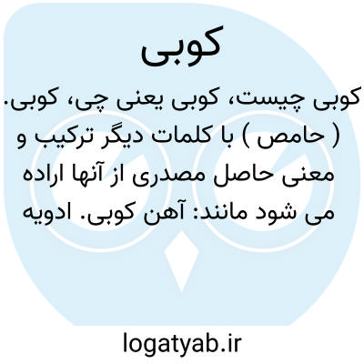 کوبی. ( حامص ) با کلمات دیگر ترکیب و معنی حاصل مصدری از آنها اراده می شود مانند: آهن کوبی. ادویه کوبی. باروت کوبی. بوریاکوبی. جاده کوبی. خال کوبی. خرمن کوبی. زرچوبه کوبی. زرکوبی. طلاکوبی. کلوخ کوبی. گچ کوبی. میخ کوبی. نخاله کوبی. نقره کوبی. و رجوع به هر یک از کلمه های فوق شود. || گاه مزید مؤخر کلماتی واقع می شود که معنی اسمی از آن مستفاد می گردد چون: آهن کوبی = محل کوبیدن آهن. باروت کوبی = محل کوبیدن باروت و جز اینها.