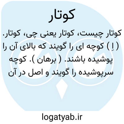 کوتار. ( اِ ) کوچه ای را گویند که بالای آن را پوشیده باشند. ( برهان ). کوچه سرپوشیده را گویند و اصل در آن کوی تار بوده یعنی کوچه تاریک. ( آنندراج ). ساباط و کوچه بازاری که روی آن را پوشانده باشند. ( ناظم الاطباء ).