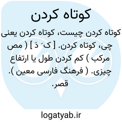 کوتاه کردن. [ ک َ دَ ] ( مص مرکب ) کم کردن طول یا ارتفاع چیزی. ( فرهنگ فارسی معین ). قصر. تقصیر. ( یادداشت به خط مرحوم دهخدا ):