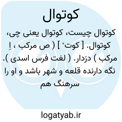 سرکوتوال از دژ آویخته.نظامی کوتوالی معتمد بر قلعه گماشتند. ( ترجمه تاریخ یمینی ). و از جوانب دیلمان و اشکور و طارم و خرکام کوتوالان بیامدند. ( جهانگشای جوینی ). تاجی بود زرین و چند اوانی زر و نقره... و هیچ معلوم نشد که ذخیره کدام پادشاه و کوتوال بوده است. ( المضاف الی بدایع الازمان ص 51 ).