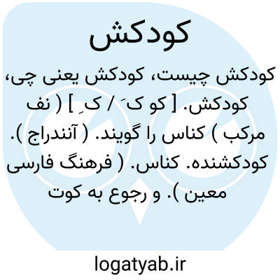 کودکش. [ کو ک َ / ک ِ ] ( نف مرکب ) کناس را گویند. ( آنندراج ). کودکشنده. کناس. ( فرهنگ فارسی معین ). و رجوع به کوت کش شود. || جاروب کش کوچه و برزن. ( ناظم الاطباء ).