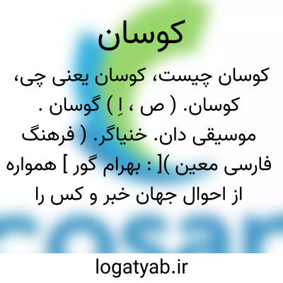 کوسان. ( اِخ ) نام شخصی بوده نایی و نی نواز در زمان یکی از پادشاهان قدیم. ( برهان ). نام نایی است که در زمان یکی از پادشاهان قدیم بود. ( فرهنگ رشیدی ). نام مردی نایی بوده که در آن کار شهرت داشته. ( آنندراج ). نام شخصی نی نواز. ( ناظم الاطباء ):