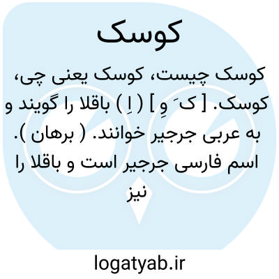 کوسک. [ ک َ وِ ] ( اِ ) باقلا را گویند و به عربی جرجیر خوانند. ( برهان ). اسم فارسی جرجیر است و باقلا را نیز گویند. ( انجمن آرا ) ( آنندراج ) ( فهرست مخزن الادویه ).
