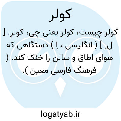 کولر. [ ل ِ ] ( انگلیسی، اِ ) دستگاهی که هوای اطاق و سالن را خنک کند. ( فرهنگ فارسی معین ).