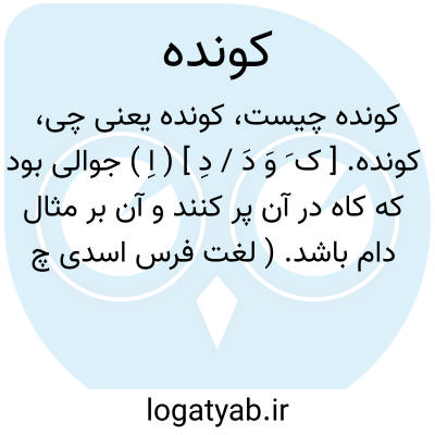 ۲. تور کاه کشی، توری که از ریسمان به شکل جوال می بافند برای حمل ونقل کاه یا چیز دیگر: مانندِ کسی که روز باران / بارانی پوشد از کونده (لبیبی: شاعران بی دیوان: ۴۸۹ ).