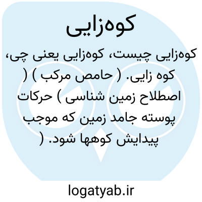 کوه زایی. ( حامص مرکب ) ( اصطلاح زمین شناسی ) حرکات پوسته جامد زمین که موجب پیدایش کوهها شود. ( فرهنگ فارسی معین ).