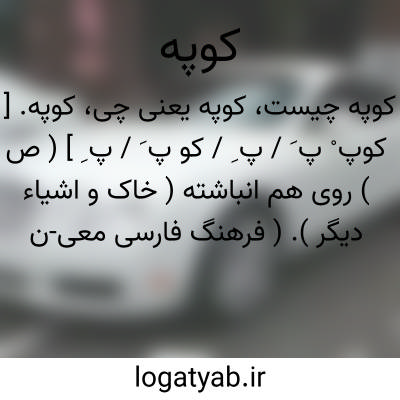 کوپه. [ کوپ ْ پ َ / پ ِ / کو پ َ / پ ِ ] ( ص ) روی هم انباشته ( خاک و اشیاء دیگر ). ( فرهنگ فارسی معی-ن ).
