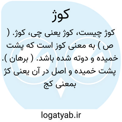 کوژ. ( ص ) به معنی کوز است که پشت خمیده و دوته شده باشد. ( برهان ). پشت خمیده و اصل در آن یعنی کژ بمعنی کج بوده چون جیم و زای فارسی بهم تبدیل می یابند، کوژپشت شده و در استعمال فتح آن به ضمه بدل گردیده. ( آنندراج ) ( انجمن آرا ). کوز و پشت دوتا وخمیده. ( ناظم الاطباء ). کوز. ( فرهنگ فارسی معین ). احدب. محدب. دوتا. دوتاه. منحنی. دولا. خم بخم. خمیده. چفته. کژ. ( یادداشت به خط مرحوم دهخدا ):