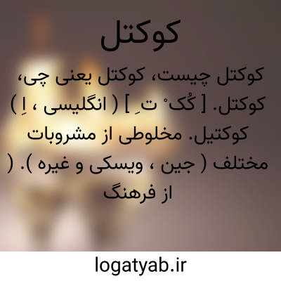 کوکتل. [ کُک ْ ت ِ ] ( انگلیسی، اِ ) کوکتیل. مخلوطی از مشروبات مختلف ( جین، ویسکی و غیره ). ( از فرهنگ فارسی معین ).