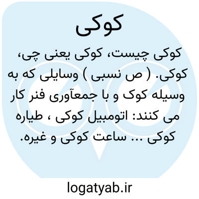 کوکی. ( ص نسبی ) وسایلی که به وسیله کوک و با جمعآوری فنر کار می کنند: اتومبیل کوکی، طیاره کوکی... ساعت کوکی و غیره. ( از فرهنگ لغات عامیانه جمالزاده ).