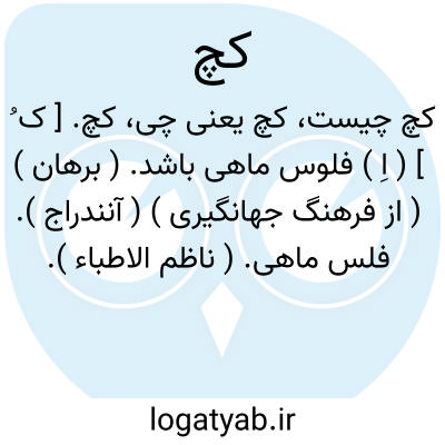 کچ. [ ک ُ ] ( اِ ) فلوس ماهی باشد. ( برهان ) ( از فرهنگ جهانگیری ) ( آنندراج ). فلس ماهی. ( ناظم الاطباء ). پولک ماهی. فلس. ( یادداشت مؤلف ). درم ماهی.