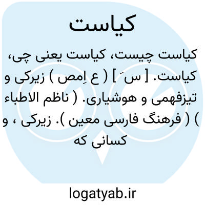 کیاست. [ س َ ] ( ع اِمص ) زیرکی و تیزفهمی و هوشیاری. ( ناظم الاطباء ) ( فرهنگ فارسی معین ). زیرکی، و کسانی که به کاف فارسی خوانند محض غلط است چرا که لفظاً عربی است و در عربی کاف فارسی نمی آید. ( غیاث ) ( آنندراج ): چه حال خرد و کفایت و کیاست تو معلوم است. ( کلیله و دمنه ). آنکه از ایشان به خرد منسوب بود و به کیاست موسوم بیرون رفت. ( کلیله و دمنه ). نظام الملک به رأی و کیاست... دشمن جان اوبود. ( سلجوقنامه ظهیری ). ارکان دولت و اعضاد آن حضرت به تقدم او در کفایت و کیاست معترف. ( ترجمه تاریخ یمینی چ 1 تهران ص 24 ). سرهنگ زاده ای را بر در سرای اغلمش دیدم که عقل و کیاستی و فهم و فِراستی زایدالوصف داشت. ( گلستان ). ملوک وافرفِراست و سلاطین کامل کیاست. ( حبیب السیر چ تهران جزو 4 از مجلد 3 ص 322 ).