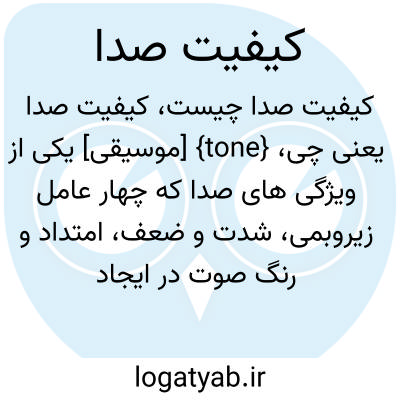 {tone} [موسیقی] یکی از ویژگی های صدا که چهار عامل زیروبمی، شدت و ضعف، امتداد و رنگ صوت در ایجاد آن مؤثر است متـ. کیفیت صوت