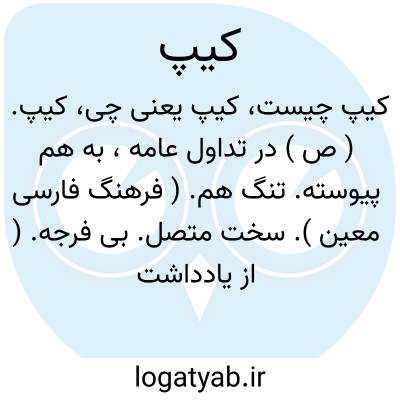 کیپ. ( ص ) در تداول عامه، به هم پیوسته. تنگ هم. ( فرهنگ فارسی معین ). سخت متصل. بی فرجه. ( از یادداشت به خط مرحوم دهخدا ).