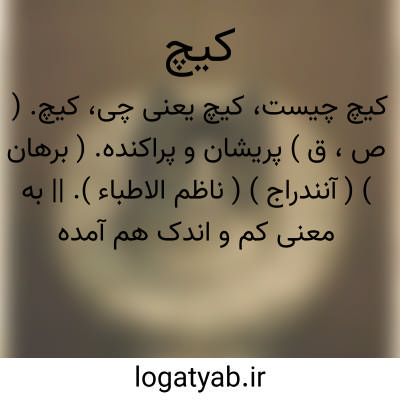 کیچ. ( ص، ق ) پریشان و پراکنده. ( برهان ) ( آنندراج ) ( ناظم الاطباء ). || به معنی کم و اندک هم آمده است. ( برهان ) ( آنندراج ). کم و اندک. ( ناظم الاطباء ). رجوع به کیچ کیچ شود. || کوچک. ( برهان ) ( آنندراج ) ( ناظم الاطباء ). کوچک و خرد. ( فرهنگ فارسی معین ). رجوع به کیچ کیچ شود. || آهسته. ( برهان ) ( آنندراج ) ( ناظم الاطباء ). || در حاشیه فرهنگ اسدی نخجوانی می گوید:«معجب بود، و چیزی طرفه را به پارسی کیچ خوانند». برهان در گنج و هم در گیج معجب و متکبر را معنی این دو کلمه آورده است درصورتی که جیم فارسی در حاشیه فرهنگ اسدی نخجوانی محقق است، برای آنکه در ردیف آخر به جیم فارسی آورده است، و چون معجب را با طرفه می آوردقصدش بدیع و شگفت آور است نه معجب به معنی متکبر. و در هیچ جای دیگر این کلمه را نیافتم. ( از یادداشت به خط مرحوم دهخدا ). || ( اِ ) جنسی از پارچه ابریشمی هم هست. ( برهان ) ( آنندراج ) ( ناظم الاطباء ).