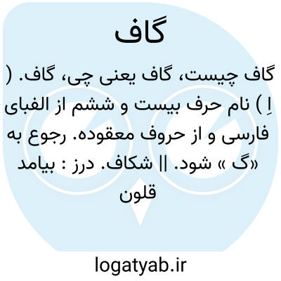 گاف. ( اِ ) نام حرف بیست و ششم از الفبای فارسی و از حروف معقوده. رجوع به «گ » شود. || شکاف. درز: