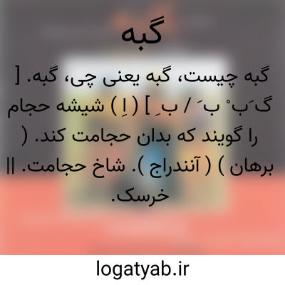 گبه. [ گ َب ْ ب َ / ب ِ ] ( اِ ) شیشه حجام را گویند که بدان حجامت کند. ( برهان ) ( آنندراج ). شاخ حجامت. || خرسک. نوعی قالی که پود دراز دارد.