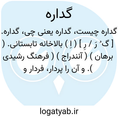گداره. [ گ ُ رَ / رِ ] ( اِ ) بالاخانه تابستانی. ( برهان ) ( آنندراج ) ( فرهنگ رشیدی ). و آن را پردار، فردار و فرداره نیز گویند. ( جهانگیری ). || تخته هایی باشد که بام خانه را بدان تخته پوشانند. ( برهان ) ( آنندراج ) ( جهانگیری ).