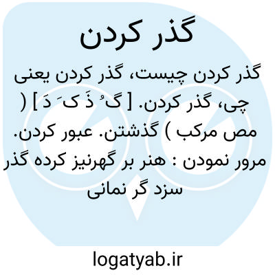 ( مصدر ) ۱ - عبور کردن گذشتن: همی رو چنین تا سر مرز هند وز اینجا گذر کن بدریای سند. ۲ - داخل شدن تیر در موضعی و از آن بیرون رفتن: آری آن تیر از او چو کرد گذر شد گشاده بر او دو چشم دگر. ( جامی ) ۳ - تجاوز کردن رحجان داشتن: هنر بر گهر نیز کرده گذر سزد گر نمانی بترکان هنر. یا گذر کردن بر دست کسی. بدست کسی آمدن و بیرون رفتن چیزی: این شیخ با این همه جاه و قبول و مال بسیار که بر دست او گذر میکند...
