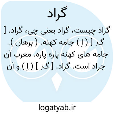گراد. [ گ ِ ] ( اِ ) جامه کهنه. ( برهان ). جامه های کهنه پاره پاره. معرب آن جراد است.
