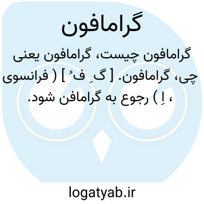 ( اسم ) آلتی است که صفحه ای را که آوازی در آن ضبط شده بگردش در آورد و همان آواز را بگوش رساند جعب. صوت: آوازیرا که دقیقا تقلیدی بود از یک صفحه که همان صبح چندین بار روی گرامافون گذارده بود بلحن گیرا و نیکو آغاز کرد.