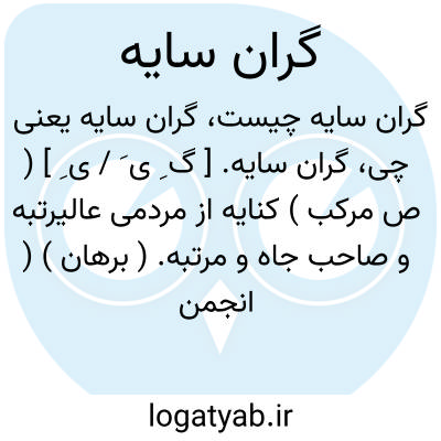 ۱ - صاحب جاه و مقام عالی قدر عالی رتبه گران پایه: چو دید آن دو مرد گران سایه را بدانایی اندر سرمایه را... ۲ - متکبر مغرور جمع: گران سایگان: نشسته بدر بر گران سایگان بپرده درون جای پرمایگان. ۳ - صاحب سپاه انبوه خیلخانه دار.