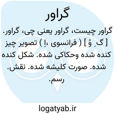 ( اسم ) ۱ - تصویری که بر روی صفحه های فلزی حکاکی شده و در چاپ بکار رود. توضیح طرز ساخت و شکل گراور عینا شبیه کلیشه است و تنها فرقی که بین آنها موجود است این است که عکس گراور را با ترام میگیرند. ۲ - تصویری که در مجله و کتاب و روزنامه و غیره چاپ شود.