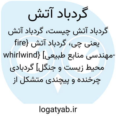 {fire whirlwind} [مهندسی منابع طبیعی- محیط زیست و جنگل] گردبادی چرخنده و پیچندی متشکل از هوای داغ و شعله و دود و گردوغبار بالارونده