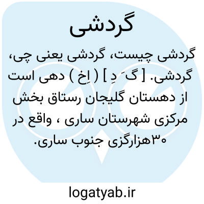 گردشی. [ گ َ دِ ] ( اِخ ) دهی است از دهستان گلیجان رستاق بخش مرکزی شهرستان ساری، واقع در 30هزارگزی جنوب ساری. بین دو رودخانه گرم رود با چهاردانگه و سیاه رودبار دودانگه در سینه ارتفاعات واقع شده و دارای 290 تن سکنه است. هوای آن معتدل و آب آنجا از رودخانه تجن تأمین میشود. محصول آنجا برنج، غلات، لبنیات و شغل اهالی زراعت و گله داری است. برنج در کنار رودخانه تجن کشت میشود. گله داران که اکثر سکنه آنجا هستند، تابستان به ییلاق برنت سوادکوه میروند. ( از فرهنگ جغرافیایی ایران ج 3 ).