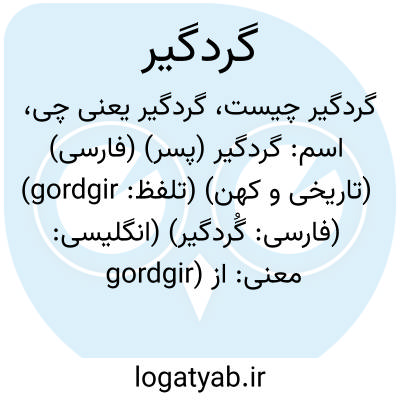 اسم: گردگیر (پسر) (فارسی) (تاریخی و کهن) (تلفظ: gordgir) (فارسی: گُردگیر) (انگلیسی: gordgir)