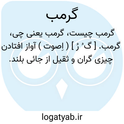 گرمب. [ گ ُ رُ ] ( اِصوت ) آواز افتادن چیزی گران و ثقیل از جائی بلند.