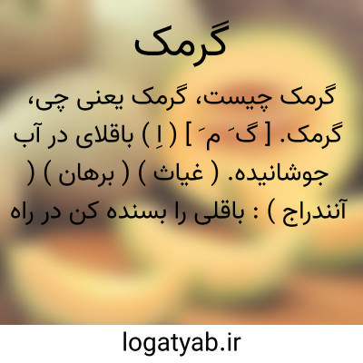 ۱ - مصغر گرم. ۲ - یکی از گونه های خربزه که پیش رس است و دارای پوست زرد و سفید مایل بزرد میباشد شکلش شلغمی و یا متمایل به کروی است. معمولا نرمتر از خربزه ولی بی مزه تر از آنست. ۳ - باقلای در آب جوشانیده.