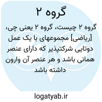 [ریاضی] مجموعه‏ای با یک عمل دوتایی شرکت‏پذیر که دارای عنصر همانی باشد و هر عنصر آن وارون داشته باشد