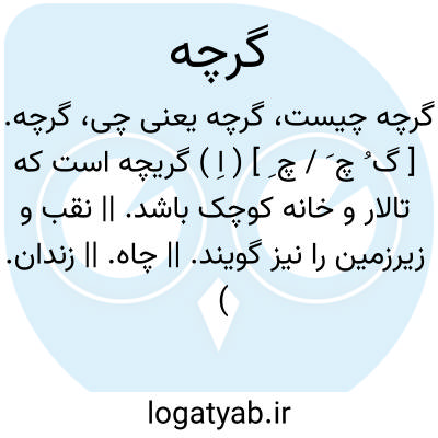 گرچه. [ گ ُ چ َ / چ ِ ] ( اِ ) گریچه است که تالار و خانه کوچک باشد. || نقب و زیرزمین را نیز گویند. || چاه. || زندان. ( برهان ) ( آنندراج ).