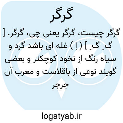 گرگر. [ گ ِ گ ِ ] ( اِ ) غله ای باشد گرد و سیاه رنگ از نخود کوچکتر و بعضی گویند نوعی از باقلاست و معرب آن جرجر باشد. ( برهان ) ( آنندراج ) ( جهانگیری ). و آن را بصفاهان گرگر گویند. ( آنندراج ). دانه ای است سیاه و گرد که در گندم زارها روید و در گلپایگان «گرگر» گویند.