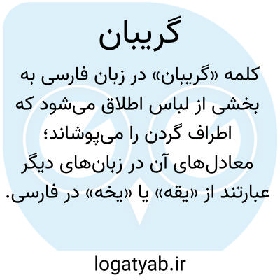 گریبان. [ گ ِ ] ( اِ مرکب ) مرکب از دو جزو: جزو اول در اوستا «گریوا» ( گردنه، کوه )، پهلوی «گریوک » ( گردنه، کوه )، هندی باستان «گریوا» ( پشت کردن )، پهلوی «پان « » گریوی ». و جزو دوم پسوند اتصاف و حفاظت است؛ جمعاً بمعنی محافظ گردن. بخشی از جامه که پیرامون گردن قرار گیرد. ( حاشیه برهان چ معین ذیل: گری، گریبان ). چرخ. ( صحاح الفرس ) ( برهان ). مرکب است از لفظ گری بمعنی گردن و عنق و کلمه بان که بمعنی دارنده و حافظ باشد. ( غیاث ) ( آنندراج ).یقه. یخه. جرباء القمیص. ( منتهی الارب ):