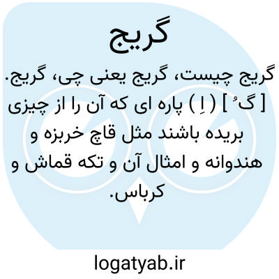 گریج. [ گ ُ ] ( اِ ) پاره ای که آن را از چیزی بریده باشند مثل قاچ خربزه و هندوانه و امثال آن و تکه قماش و کرباس. ( شعوری ج 2 ورق 308 ). || نقب و زیرزمین و چاه زندان: