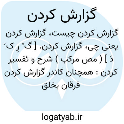 ( مصدر ) ۱ - شرح دادن تفسیر کردن: همچنان کاندر گزارش کردن فرقان بخلق هیچ کس انباز و یار احمد مختار نیست. ( ناصر خسرو ) ۲ - جستجو کردن: هردم آهنگ خارشی میکرد خویشتن را گزارشی میکرد. ( هفت پیکر ) یا گزارش خواب. تعبیر کردن خواب: پس از آن خواب دیدن نوشیروان بود تا بوزرجمهر را از مرو بیاوردند کودک بود و گزارش کرد.