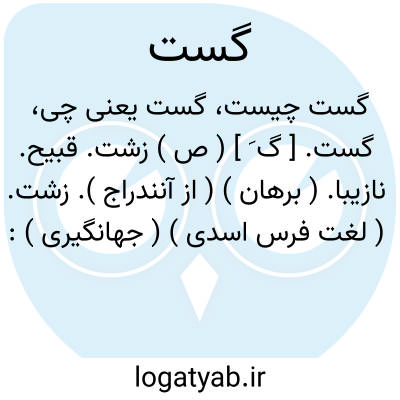 ( صفت ) ۱ - زشت نا زیبامقابل زیبا: چه عاشق باشد اندر عشق چه مست کجا بر چشم او نیکو بود گست. ( ویس ورامین ) ۲ - شرم آور فضیح دلبرا. دورخ تو بس خوبست از چه با یار کار گست کنی ? ( عمار. مروزی. رودکی )