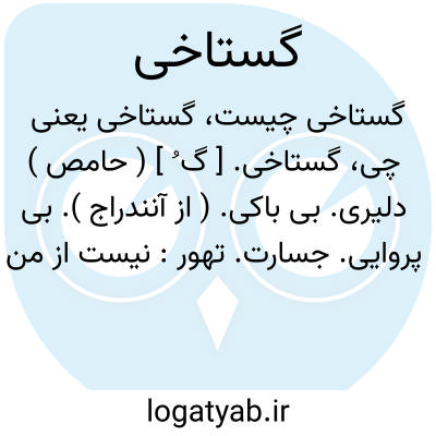 تو دل را به گستاخی اندر مبند.فردوسی.و اتفاق را بازرگانان روم بودند به ترکستان آمده بودند به گستاخی آنگه شنیده بودند که اسکندر بر کنار دریاست. ( اسکندرنامه نسخه خطی سعید نفیسی ). و میان ما دوستی و یگانگی بود و آنچه پیش از این گفته بودیم از راه گستاخی بود از سر آن درگذشتیم. ( تاریخ بخارای نرشخی ).
