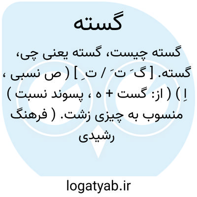 گسته. [ گ َ ت َ / ت ِ ] ( ص نسبی، اِ ) ( از: گست + ه، پسوند نسبت ) منسوب به چیزی زشت. ( فرهنگ رشیدی ) ( فرهنگ نظام ) ( حاشیه برهان قاطع چ معین ). || سرگین باشد که فضله اسب و استر و خر و گاو است. ( برهان ). سرگین، زیرا که نسبت به چیز زشت دارد، و ها برای نسبت است. ( آنندراج ) ( انجمن آرا ) ( جهانگیری ).
