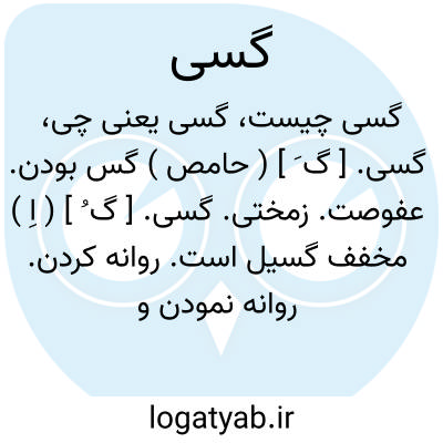 گسی. [ گ ُ ] ( اِ ) مخفف گسیل است. روانه کردن. روانه نمودن و فرستادن. ( جهانگیری ) ( برهان ) ( فرهنگ رشیدی ) ( آنندراج ).گسیل کردن. || وداع کردن. ( برهان ) ( جهانگیری ) ( فرهنگ رشیدی ). || دفع کردن. ( برهان ). || فرستادن باشد کسی را به جایی. ( برهان ) ( آنندراج ). و رجوع به گسی کردن و گسیل کردن شود.
