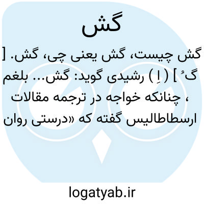گش. [ گ ُ ] ( اِ ) رشیدی گوید: گش... بلغم، چنانکه خواجه در ترجمه مقالات ارسطاطالیس گفته که «درستی روان بکمی گش و خون است ». این عبارت منقول از رساله تفاحیه به قلم افضل الدین محمد کاشانی است و در مصنفات افضل الدین چ مینوی - مهدوی ج 1 چ 1331 تهران ص 6 چنین آمده: گفت ( ارسطو )، نه شما دانید که سرور روان به حکمت است ؟ و حکمت به سبکی نفس و روان توان یافت ؟ و سبکی وی به درستی وی است ؟ و درستی روان به کمی بلغم و گش و خون است ؟» و کلمه «گش » را باباافضل در ترجمه «مرتین » عربی آورده که بمعنی صفرا و سوداست. اشتباه مؤلف برهان در آن است که «گش » بمعنی صفرا و سودا را به معنی بلغم گفته است. ( از حاشیه برهان قاطع چ معین ). بلغم را گویند که از جمله اخلاط اربع است که آن خون و صفرا و سودا و بلغم باشد. ( برهان ): رشیدی گوید: شمس دلالت کند بر گش زرد. ( التفهیم ابوریحان بیرونی ). زحل دلالت دارد بر زمین و گش سیاه. ( التفهیم ابوریحان ). هر برجی که گرم و خشک است به آتش منسوب است از عالم و به گش زرد از خلطهای تن و هر برجی که سرد و خشک است منسوب بود به زمین از عالم و گش سیاه از تن. ( التفهیم ابوریحان ). || سنگ پشت. ( فرهنگ رشیدی ) ( آنندراج ). || مایعهائی که در بعض از حفره های بدن جمع شود. ( فرهنگستان ).