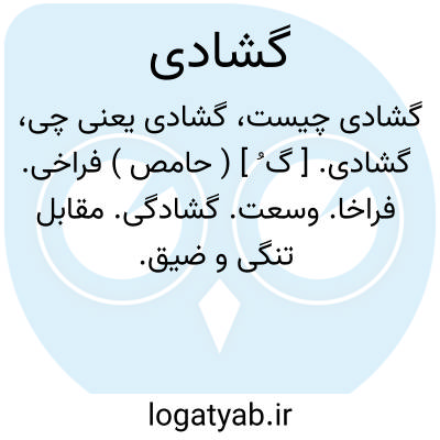 گشادی. [ گ ُ ] ( حامص ) فراخی. فراخا. وسعت. گشادگی. مقابل تنگی و ضیق.