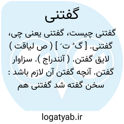 ناگفتنی نگویی گویی تو گفتنی.منوچهری.پیر بخاری را صلتی دادند و وزیر ویرا بخواند و آنچه گفتنی بود جواب پیغامها با وی بگفت. ( تاریخ بیهقی چ ادیب ص 500 ).آنچه گفتنی و نهادنی بود بنهادند و بگفتند. ( تاریخ بیهقی چ ادیب ص 395 ). و از این بود که زکریا در شریعت روزه داشتی از گفتنی و خوردنی. ( قصص الانبیاء ص 202 ).