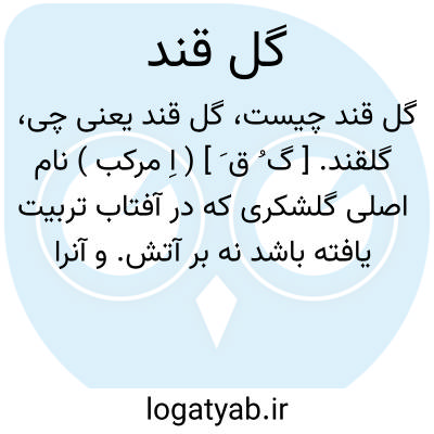 ( اسم ) ۱ - نوعی مربا که از برگهای گل سرخ و شکر ( یا قند ) در آفتاب پرورش دهند و آن بمنظور تقویت و لینت مزاج تجویز میشده گلشکر گلنگبین: قرص لیموی و گوارشت لطیف عنبر گلشکر باشد و گلقند و شراب دینار. ( بسحاق اطعمه ) ۳ - ( استعاره ) لب معشوق: طرب فزایی گلقند نکته پردازش سرور مرغ چمن بر پر مگس بندد. ( ملاطغرا )