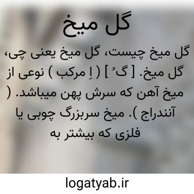 ( اسم ) ۱ - میخ آهنین با سر مدور پهن ( که بر دروازه کوبند یا میخ چادر و مانند آن ): شب وصل تو نهان آمده ام تا دم صبح ماه را ساخته گل میخی و بر در زده ام. ( مسیح کاشی ) ۲ - دگمه ای که خلخال ودست برنجن را بدان بند کنند.