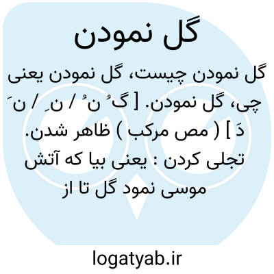 لغت نامه دهخدا گل نمودن. [ گ ُ ن ُ / ن ِ / ن َ دَ ] ( مص مرکب ) ظاهر شدن. تجلی کردن: یعنی بیا که آتش موسی نمود گل تا از درخت نکته توحید بشنوی.حافظ.
