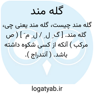 گله مند. [ گ ِ ل ِ / ل ِ م َ ] ( ص مرکب ) آنکه از کسی شکوه داشته باشد. ( آنندراج ).