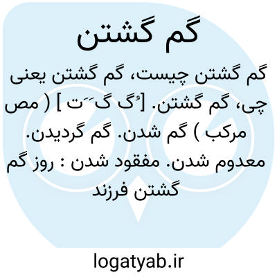 ( مصدر ) ۱ - مفقود شدن. ۲ - از راه خود به بیراهه افتادن: راستی موجب رضای خداست کس ندیدم که گم شد از ره راست. ( گلستان ) ۳ - ضایع شدن تباه گشتن. ۴ - نابود گشتن. یا گم شو. دور شو از نظرم غایب شو. دشنامی است که بدان رفتن مخاطب را خواهند: دختر. بی شرم برو گم شو میخواهی لک روی دخترم بگذاری ?